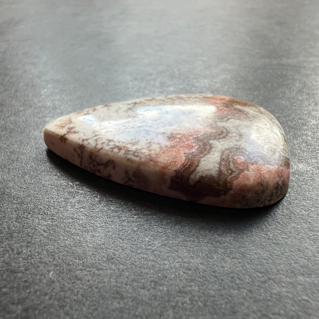 Variété d’agate rarement proposée avec des motifs en lacet finement dessinés. Certaines personnes y voient des fortifications ! Ici un tout petit lot sélectionné parmi les plus belles que j’ai pu rencontré lors de notre dernier voyage.