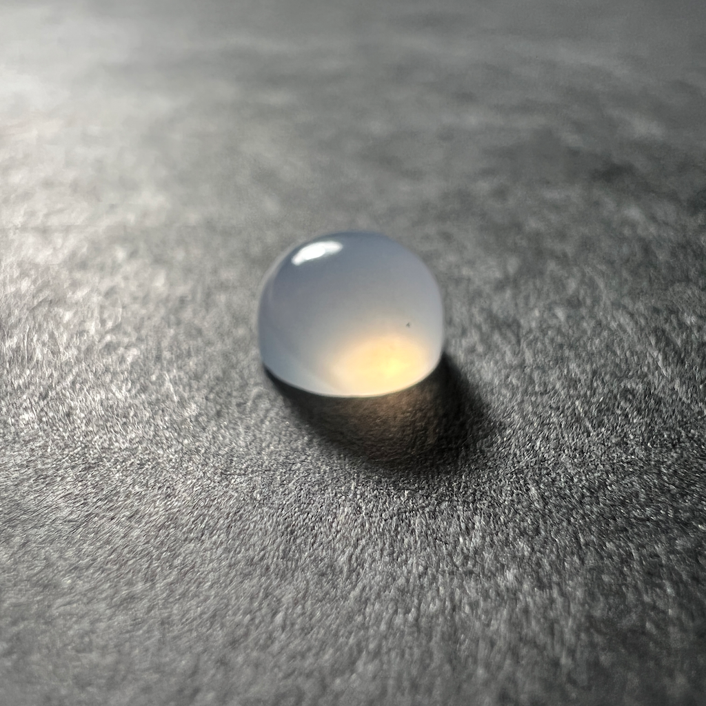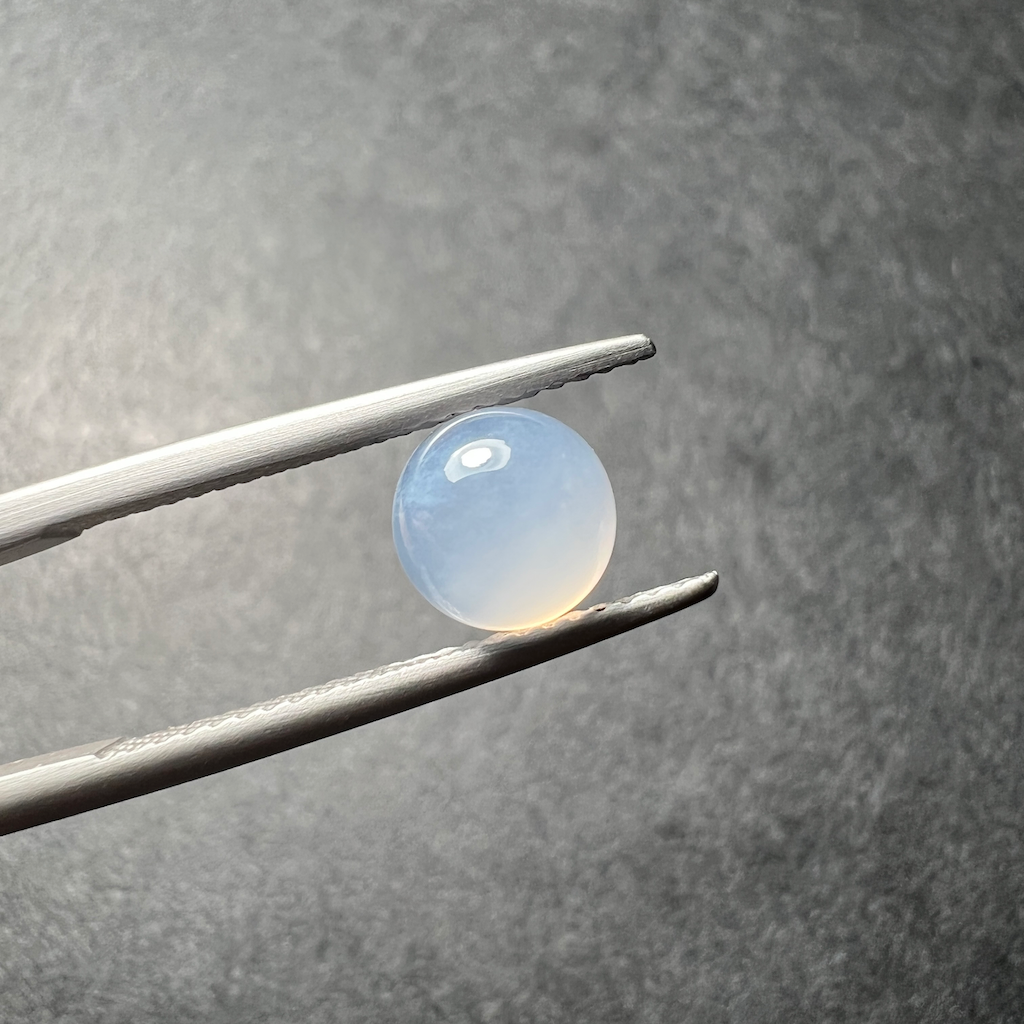 La calcédoine bleue appartient à la famille du quartz. D’un bleu-gris laiteux, les calcédoines sont translucide. Ici proposée dans sa plus belle qualité, d’une translucidité limpide.