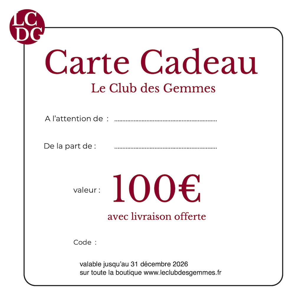 Cette carte cadeau permettra à la personne de votre choix de bénéficier d’une remise d’une valeur de 100€ sur toute la boutique de plus la livraison de sa commande sera gratuite.
