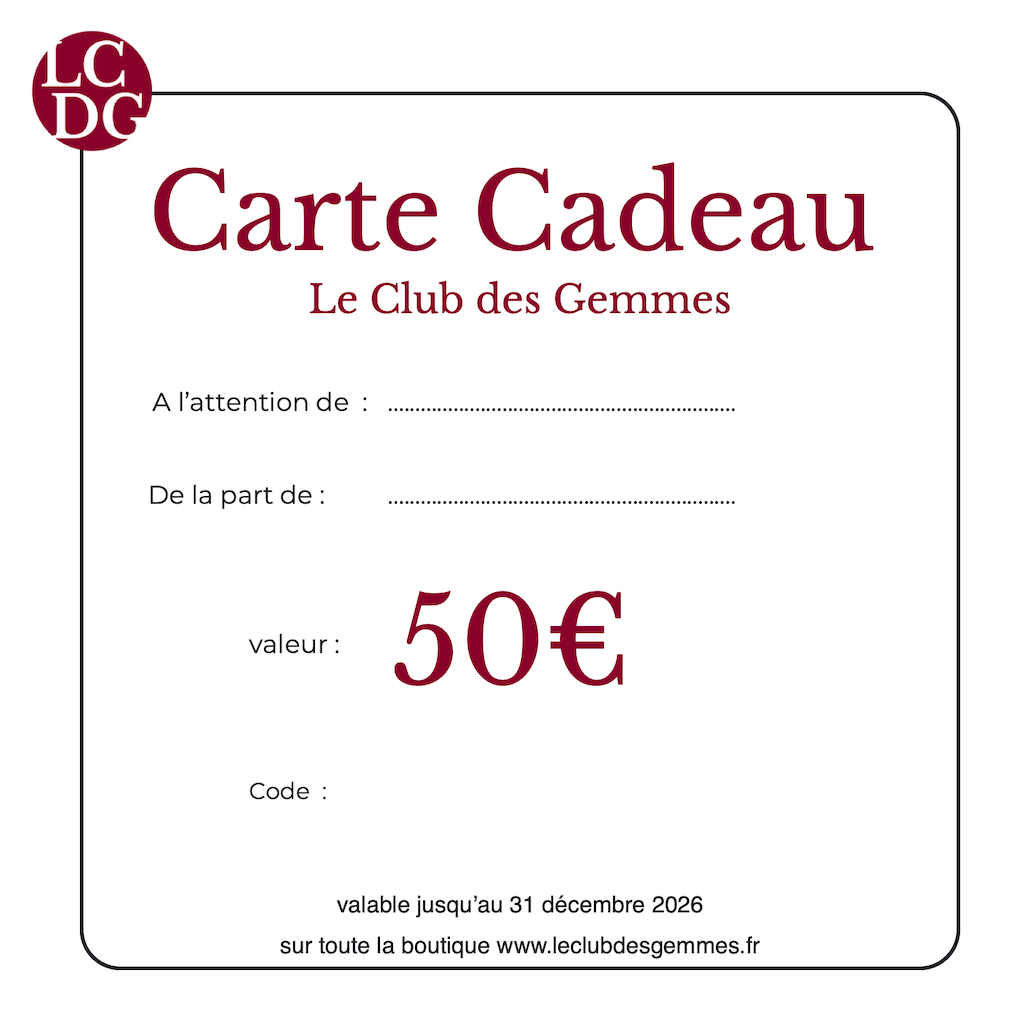 Cette carte cadeau permettra à la personne de votre choix de bénéficier d’une remise d’une valeur de 50€ sur toute la boutique.
