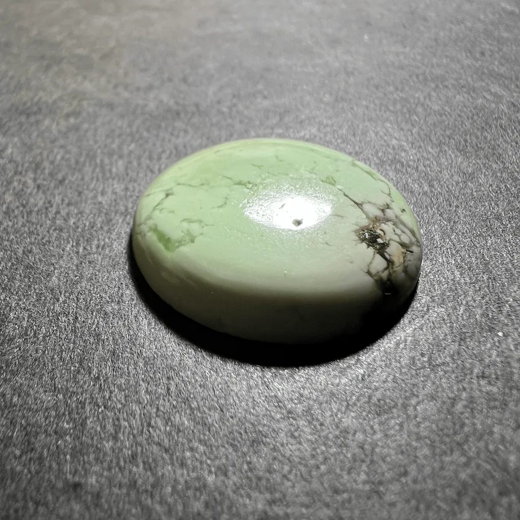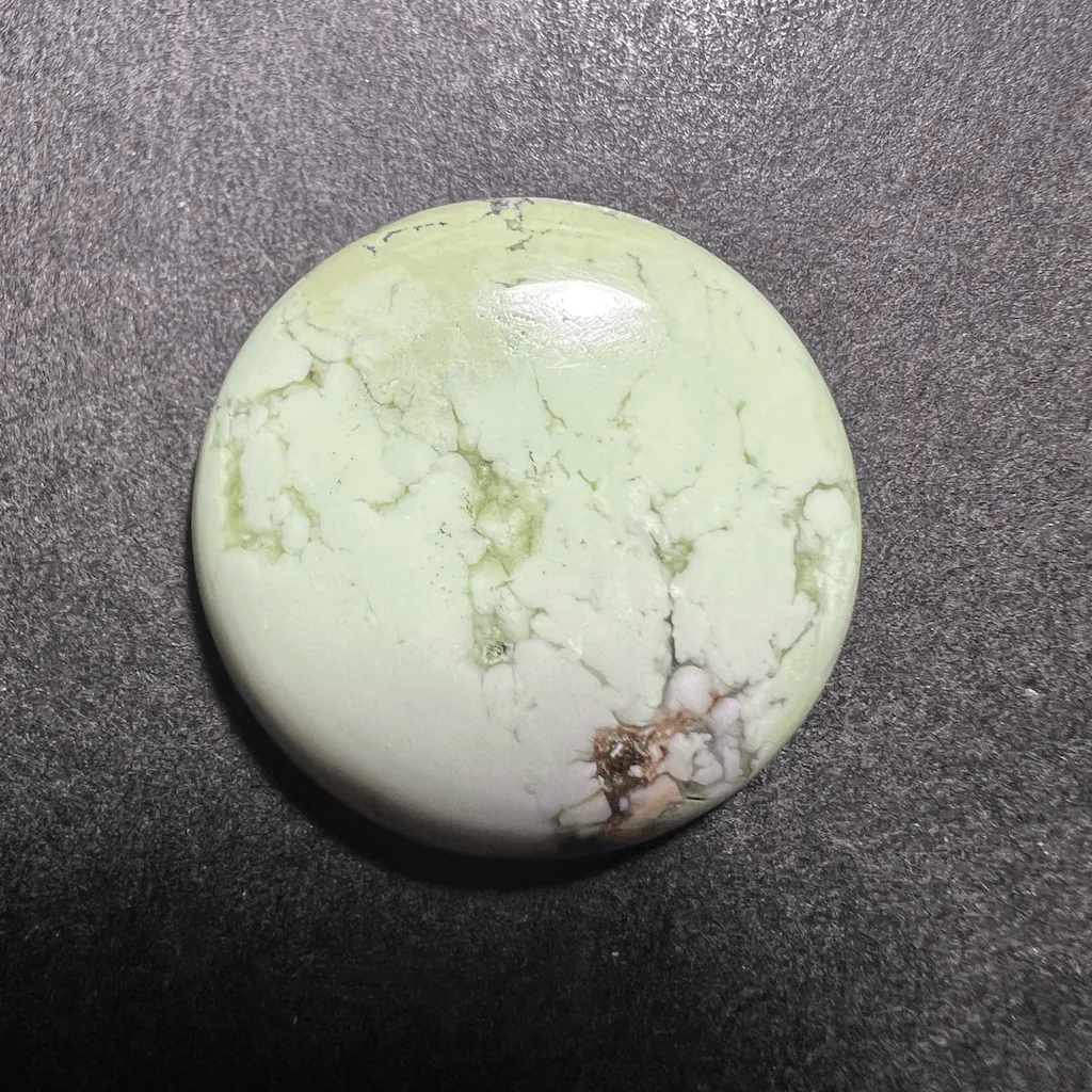 Cette variété de magnésite offre une couleur verte nuancé de jaune pale et douce. Avec des veines marrons foncés contrastant avec le pale vert. Cette pierre est faussement appelée “Chrysoprase Citron” alors que c’est une magnésite.