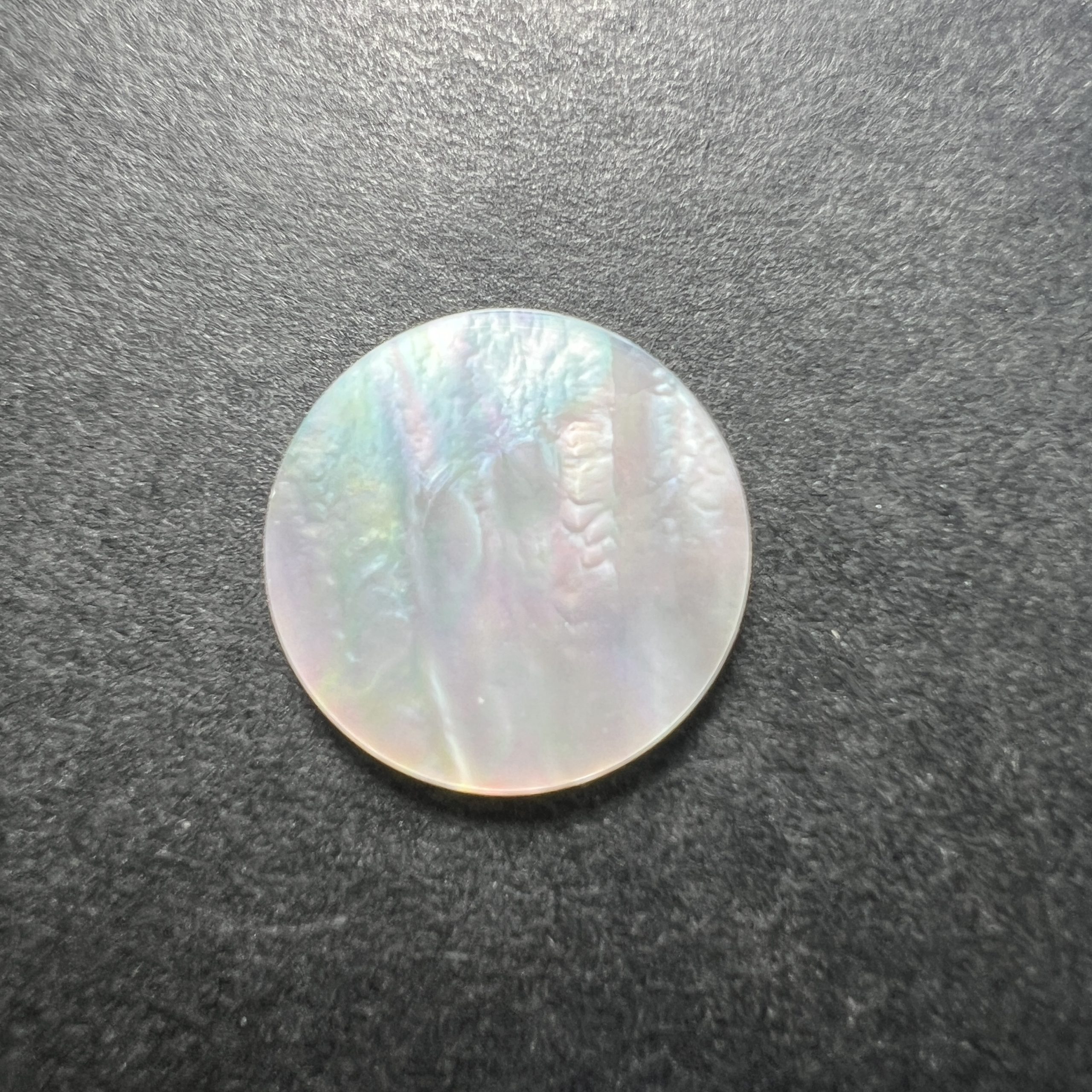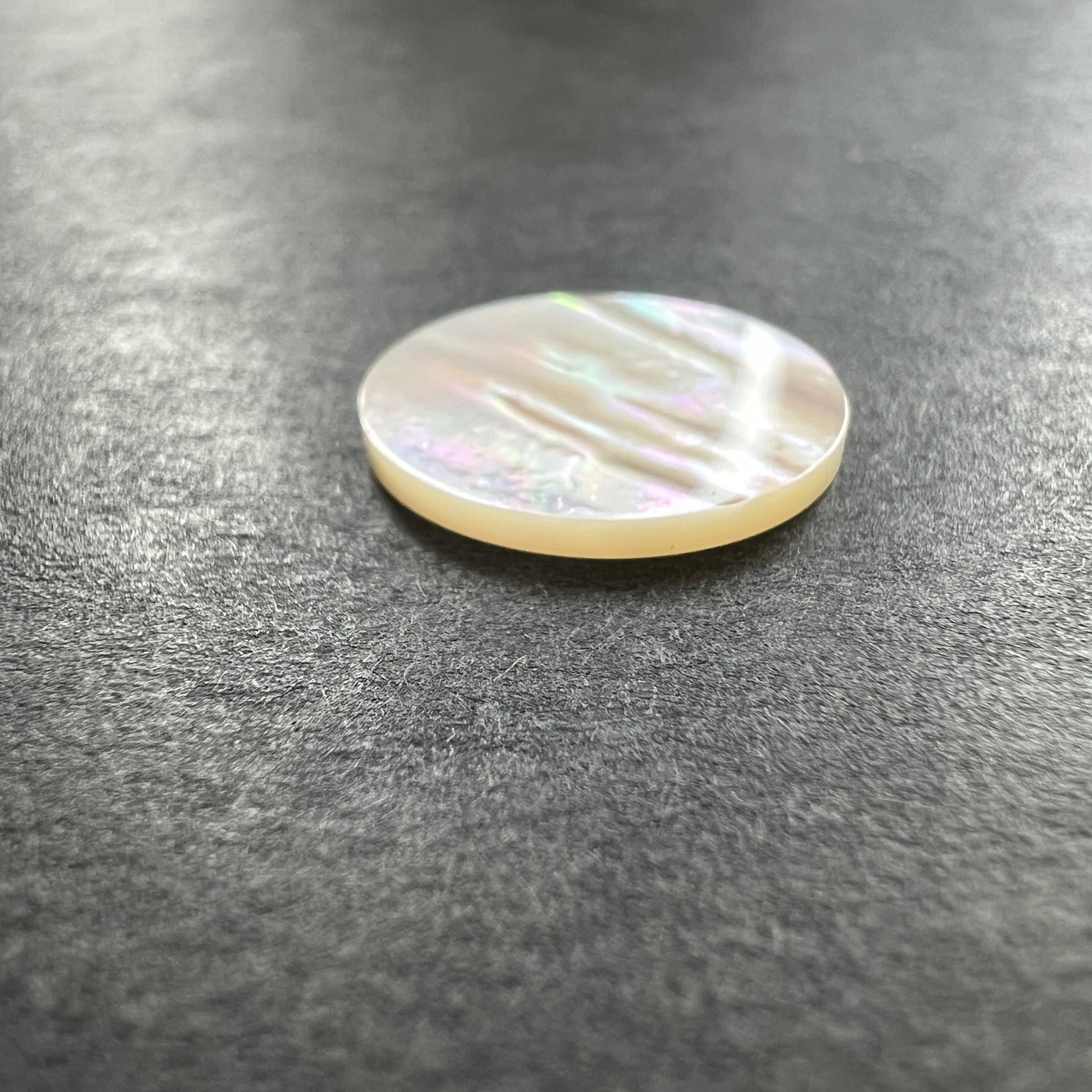 La nacre blanche une iridescence subtil rose-vert. Cette nacre provient de la variété Pinctada Maxima, réputé pour son utilisation en perle de culture. Contrairement aux pièces de nacres toutes fines vendues sur le marché, ici ces pièces de nacre sortent particulièrement du lot, car elles sont d’une belle épaisseur 1,5mm d’épaisseur pour les rondes, et quasiment 3mm pour les carrés !