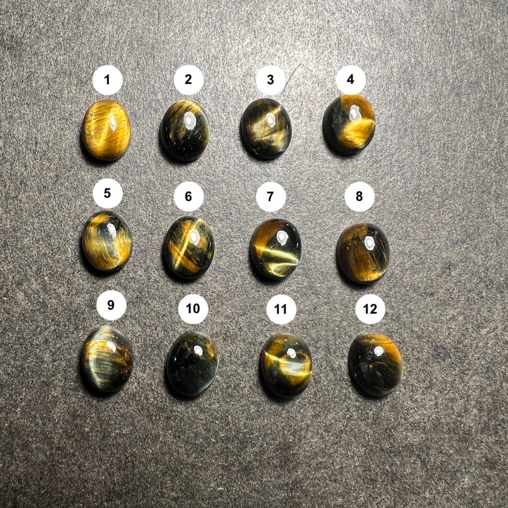 Cette variété est tout à fait exceptionnelle, car l’oeil de faucon (bleu-gris), et l’oeil de tigre (jaune-brun) se retrouvent mélangés. Chaque pierre propose un motif tout à fait unique.