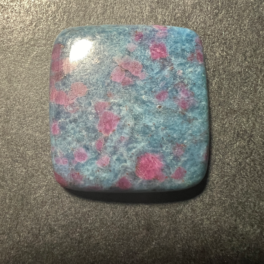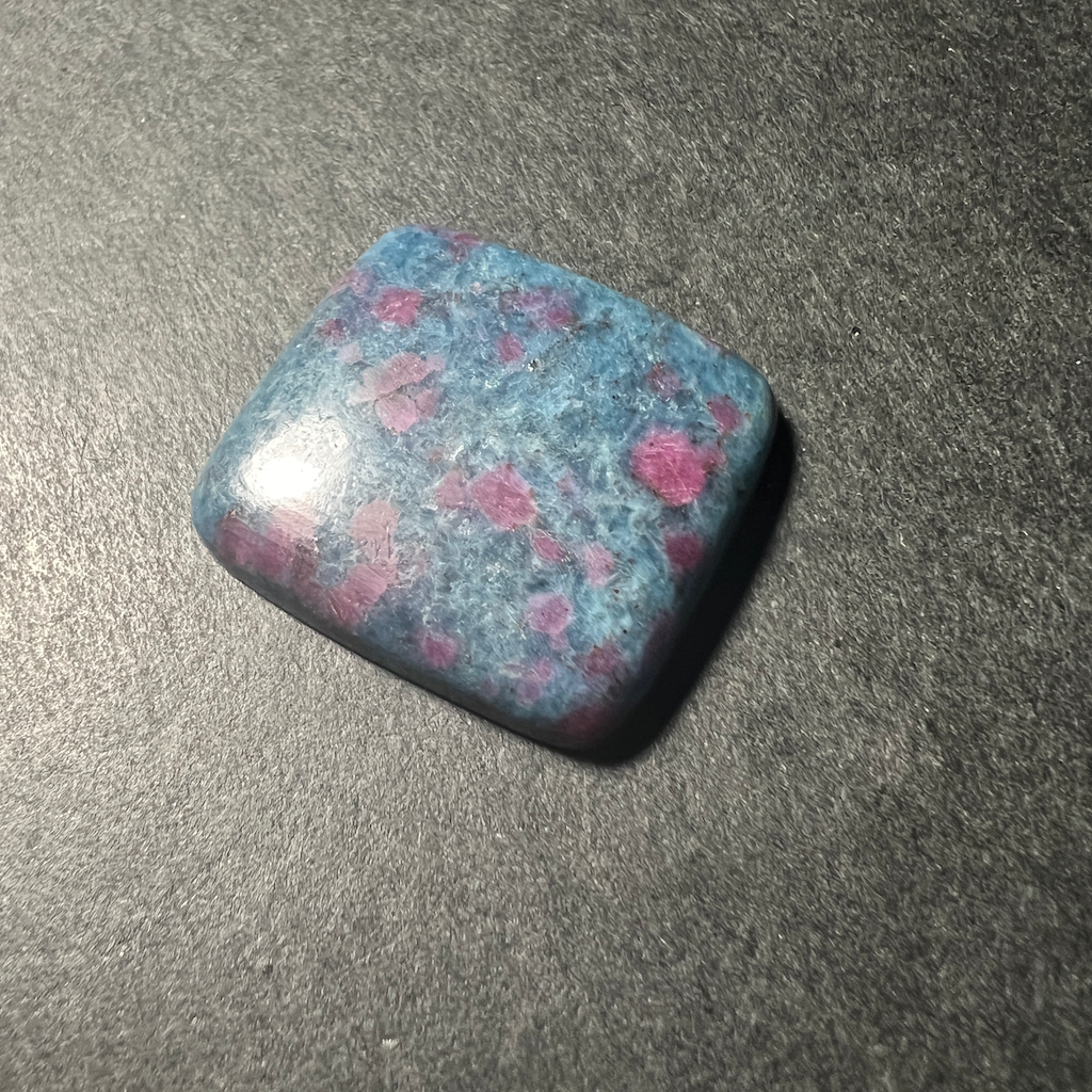 “Dans cette roche toute en finesse, le rubis est parsemé sur une matrice de cyanite, d’un plus bel effet, sélectionnée ici dans sa plus belle qualité.