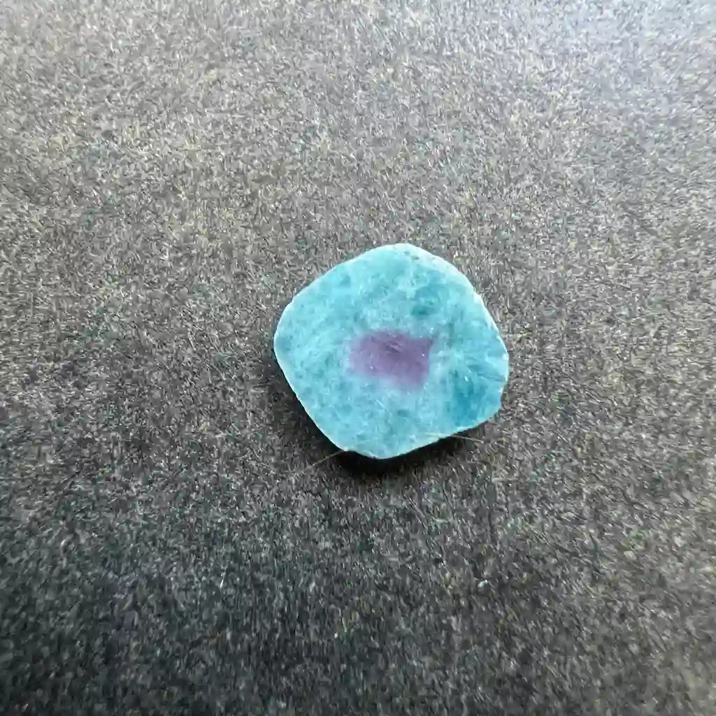 Tranche fine de rubis sur matrice de cyanite. Offrant un beau contraste entre le rouge du rubis et le bleu de la cyanite. Attention tranche très fine, regardez l’épaisseur et les photos.
