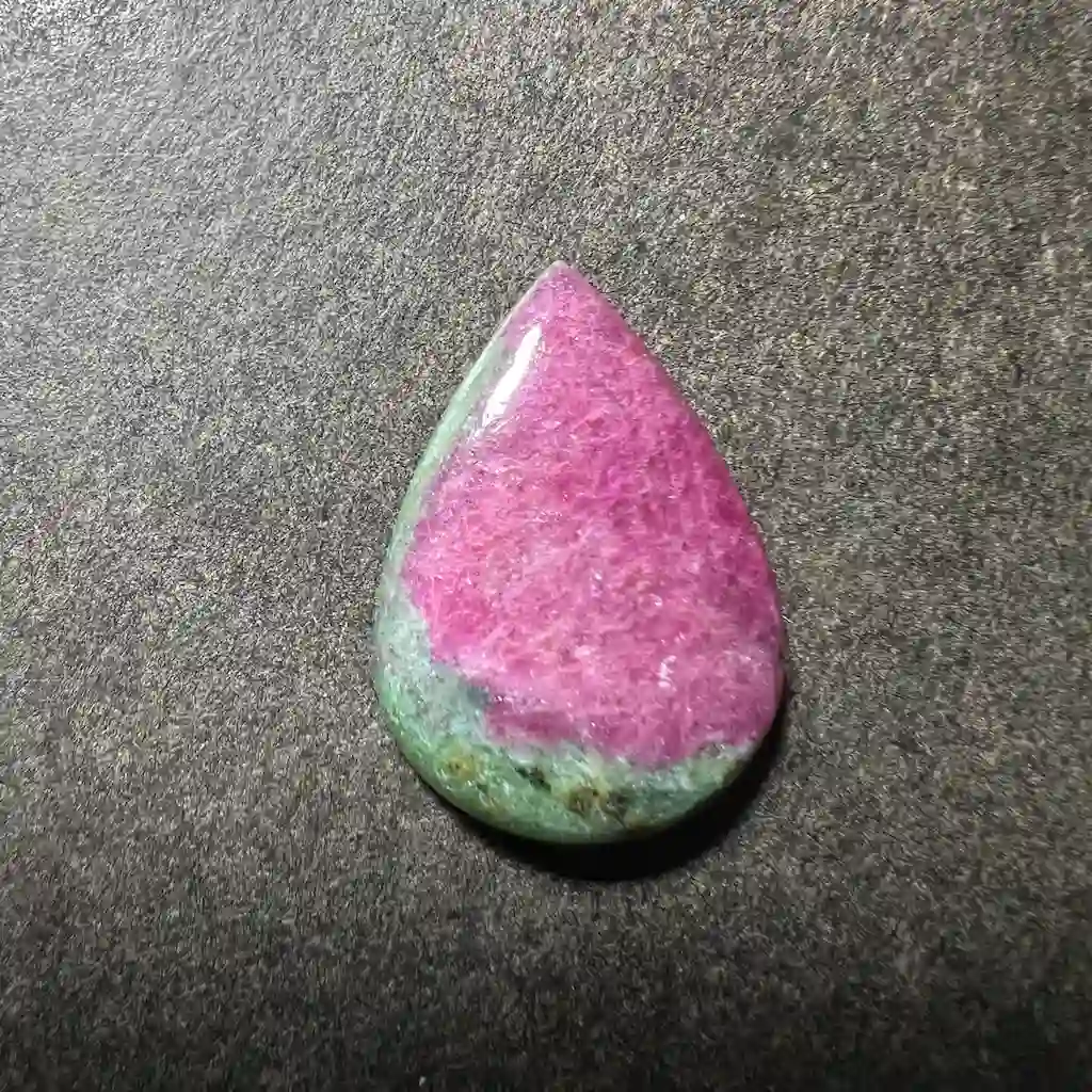 Roche dans laquelle le rouge du rubis ressort superbement sur le fond vert de la zoïsite. Sélectionnée dans sa plus belle qualité. Appellation commerciale : anyolite.