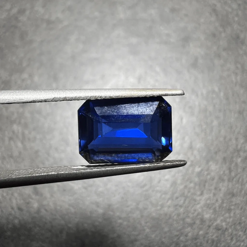 Saphir synthétique créé en laboratoire ayant les mêmes propriétés physiques, chimiques et optiques que les saphirs naturels