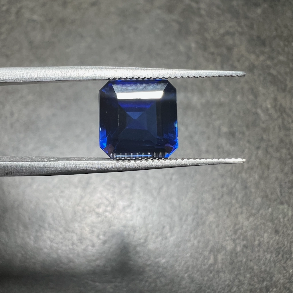 Saphir synthétique créé en laboratoire ayant les mêmes propriétés physiques, chimiques et optiques que les saphirs naturels