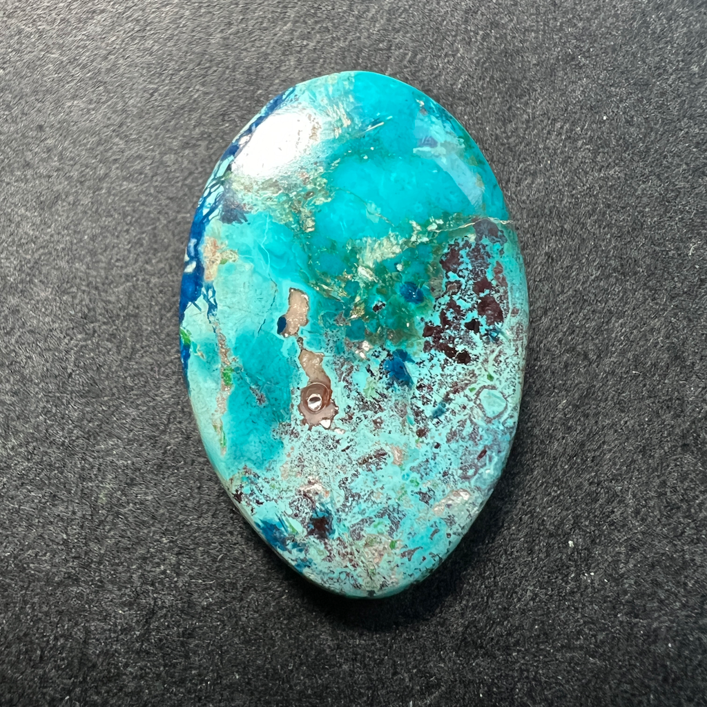 Superbe gemme ornementale offrant des motifs dégradés de bleus très variés du à sa composition à base de cuivre.