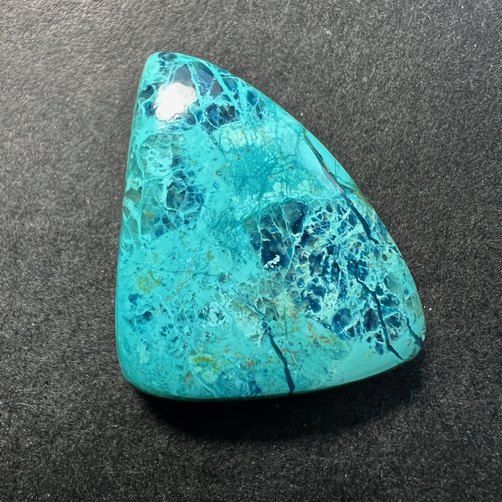 Superbe gemme ornementale offrant des motifs dégradés de bleus très variés du à sa composition à base de cuivre.